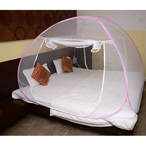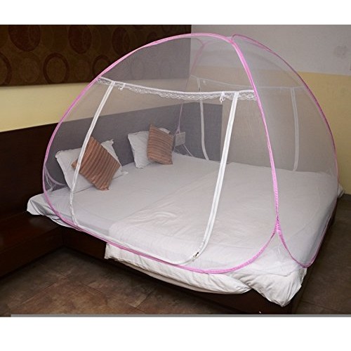 Classic Mosquito Net - Foldable, King Size Double Bed With Saviours - (Pink)